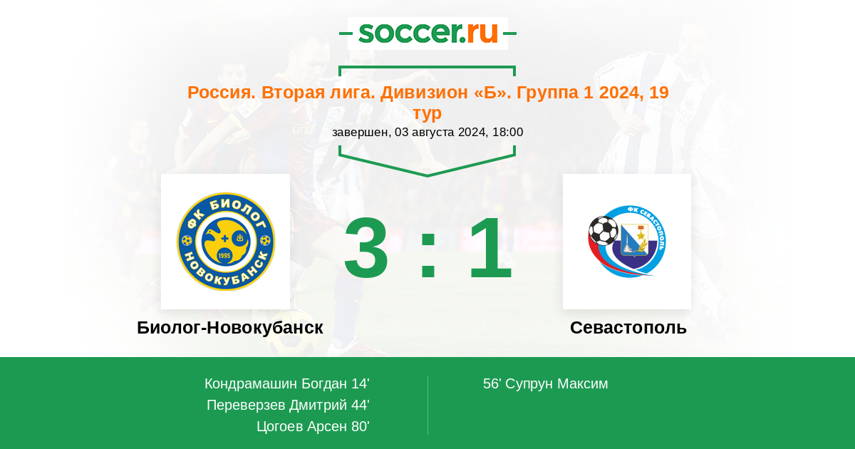 Протокол матча Биолог-Новокубанск против Севастополь