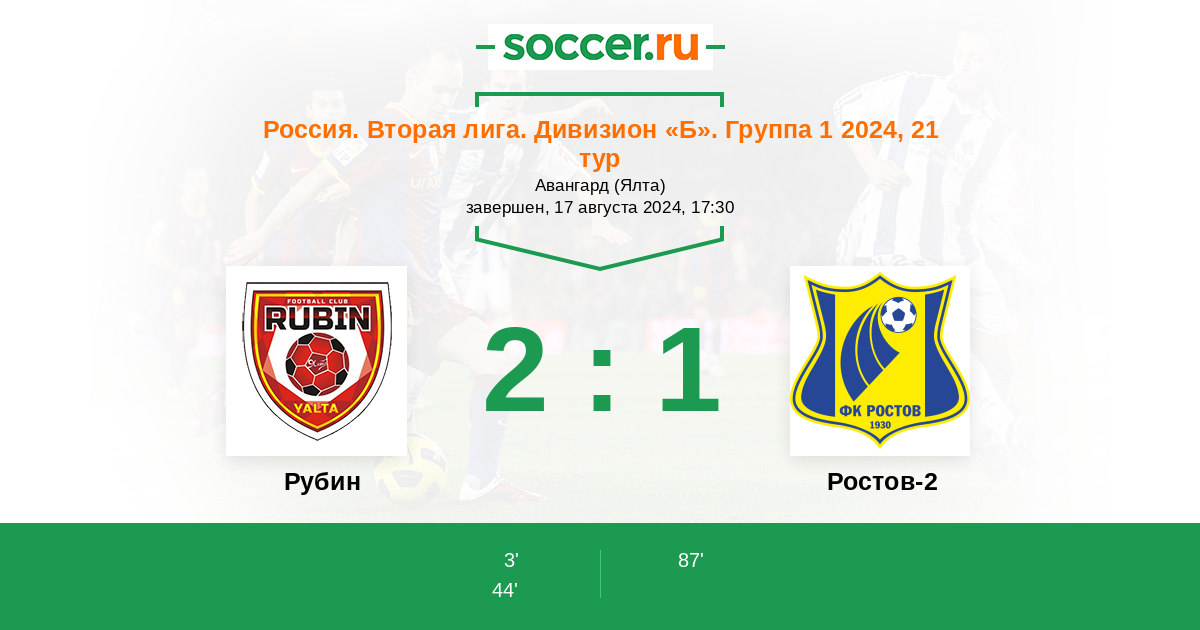 Протокол матча Рубин против Ростов-2