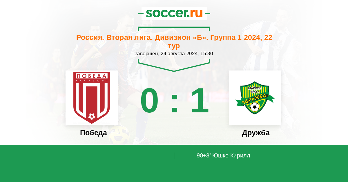 Протокол матча Победа против Дружба