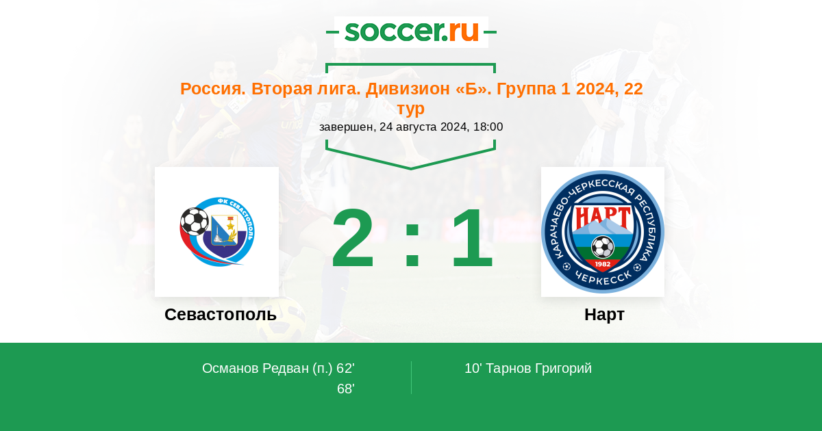 Протокол матча Севастополь против Нарт