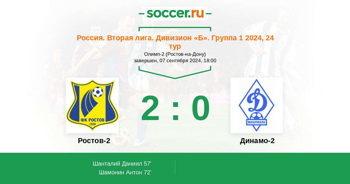 Протокол матча Ростов-2 против Динамо-2