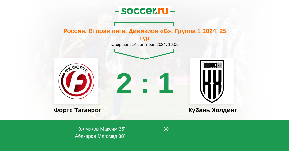 Протокол матча Форте Таганрог против Кубань Холдинг