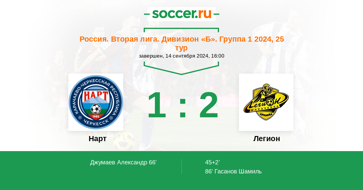 Протокол матча Нарт против Легион
