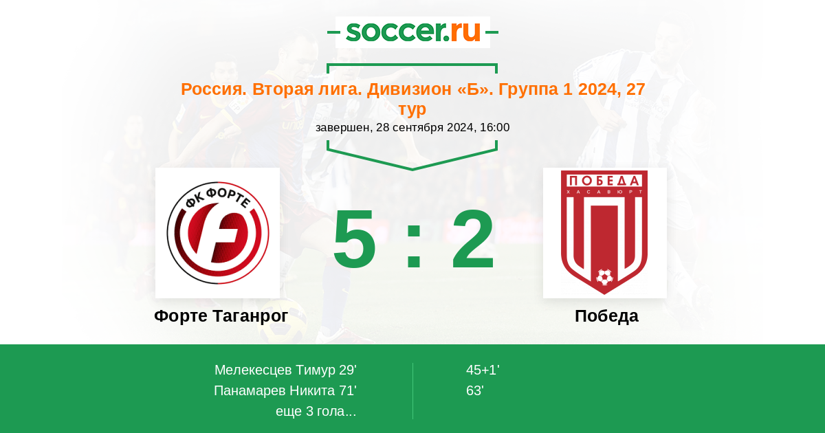 Протокол матча Форте Таганрог против Победа