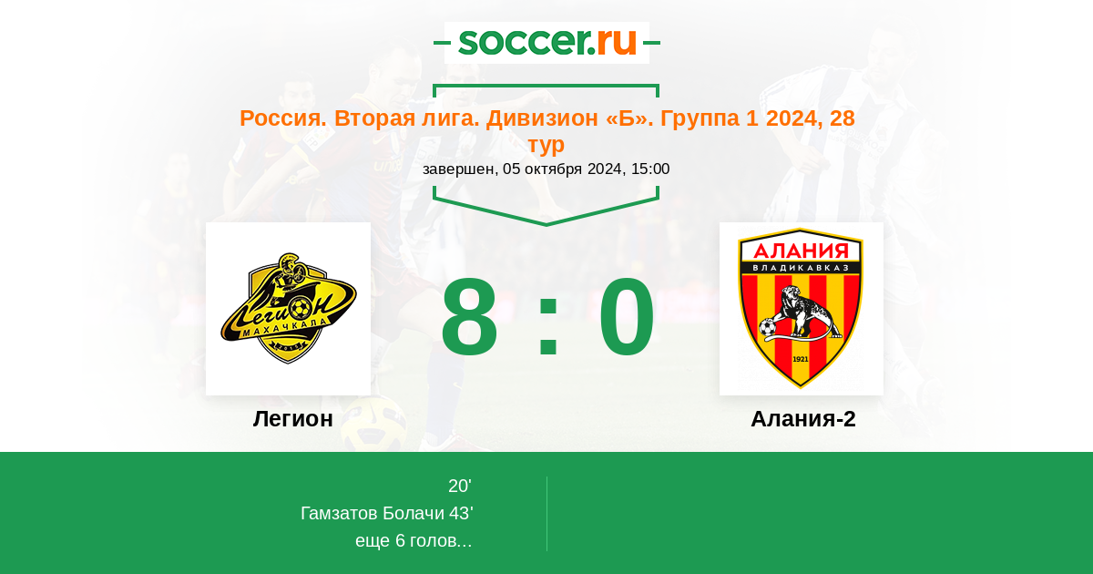 Протокол матча Легион против Алания-2