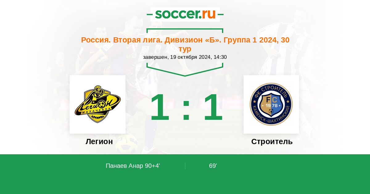 Протокол матча Легион против Строитель