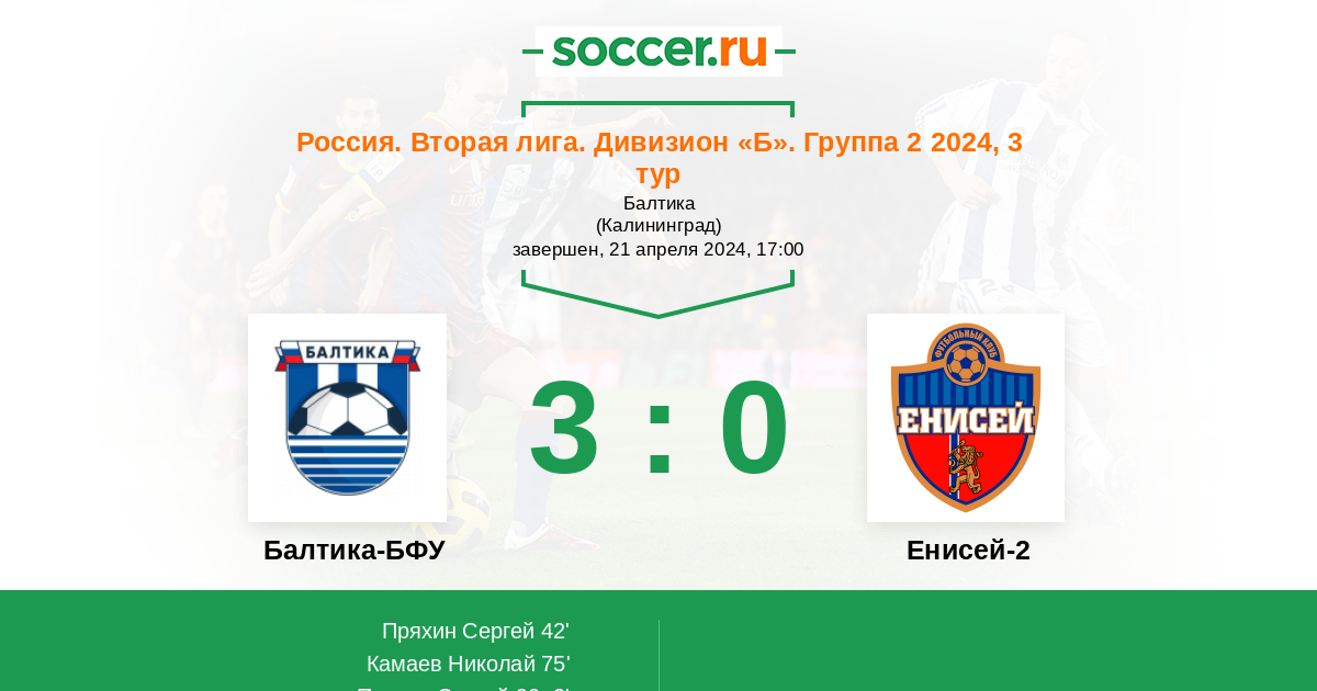 Протокол матча Балтика-БФУ против Енисей-2