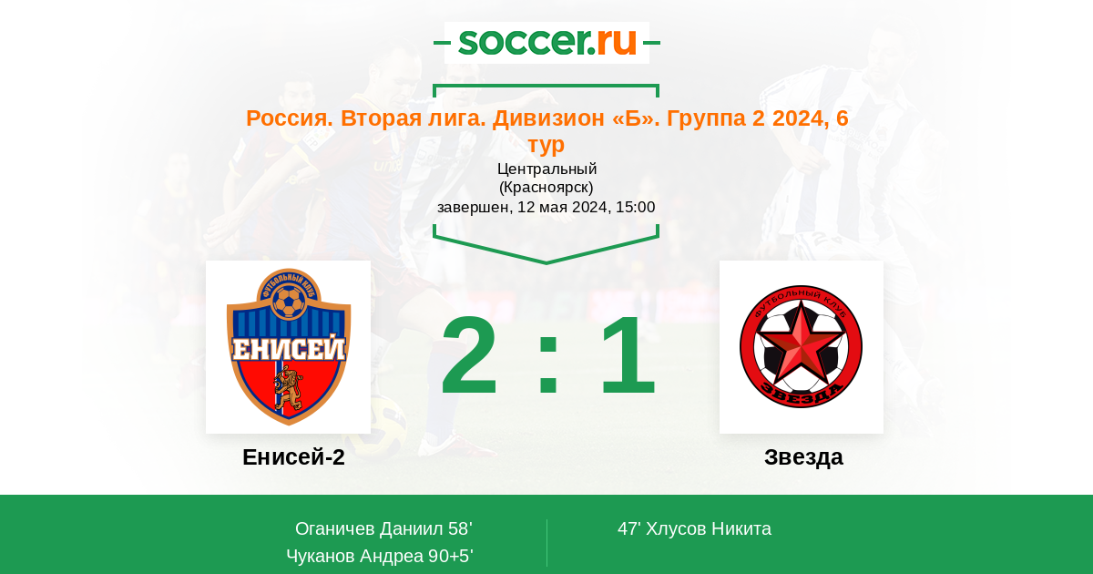 Протокол матча Енисей-2 против Звезда