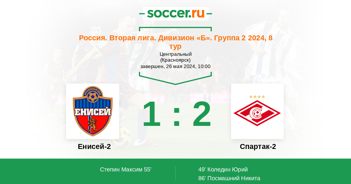 Протокол матча Енисей-2 против Спартак-2