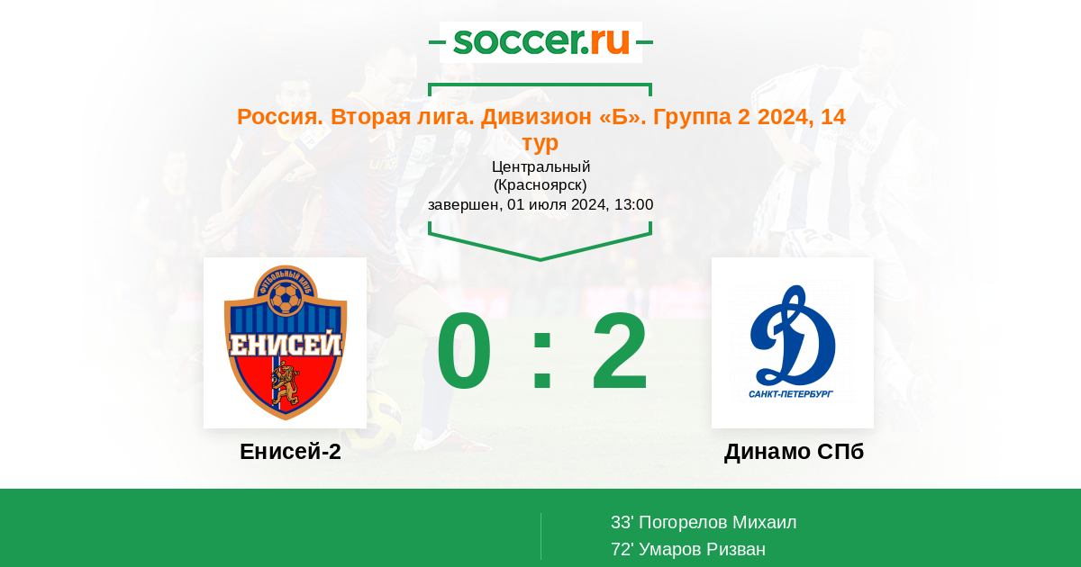 Протокол матча Енисей-2 против Динамо СПб