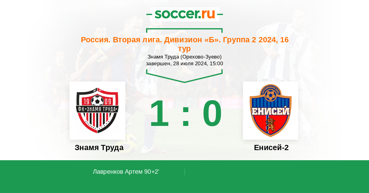 Протокол матча Знамя Труда против Енисей-2
