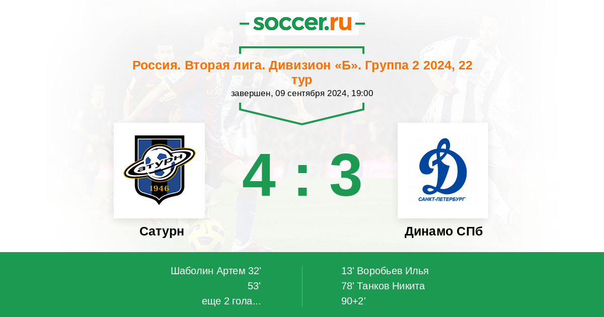 Протокол матча Сатурн против Динамо СПб