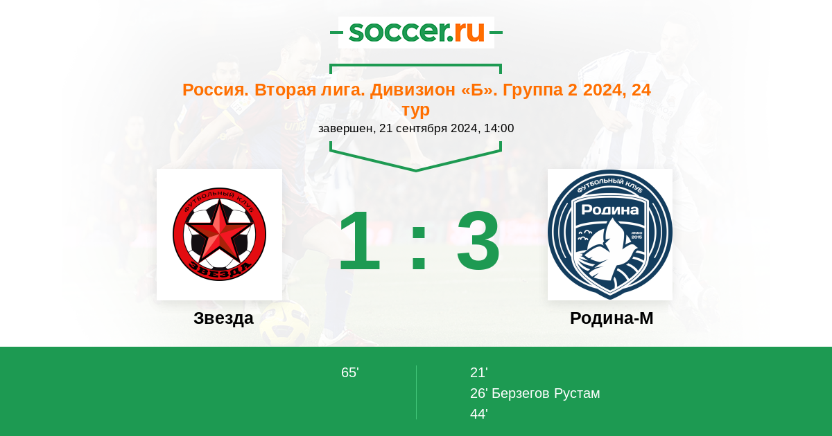 Протокол матча Звезда против Родина-М