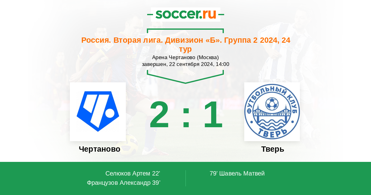 Протокол матча Чертаново против Тверь