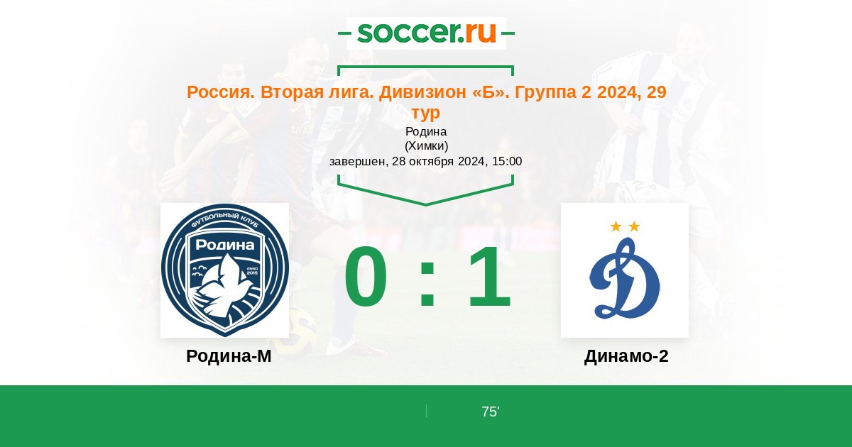 Протокол матча Родина-М против Динамо-2