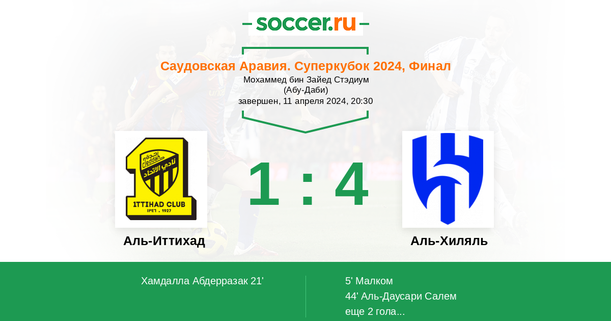Протокол матча Аль-Иттихад против Аль-Хиляль
