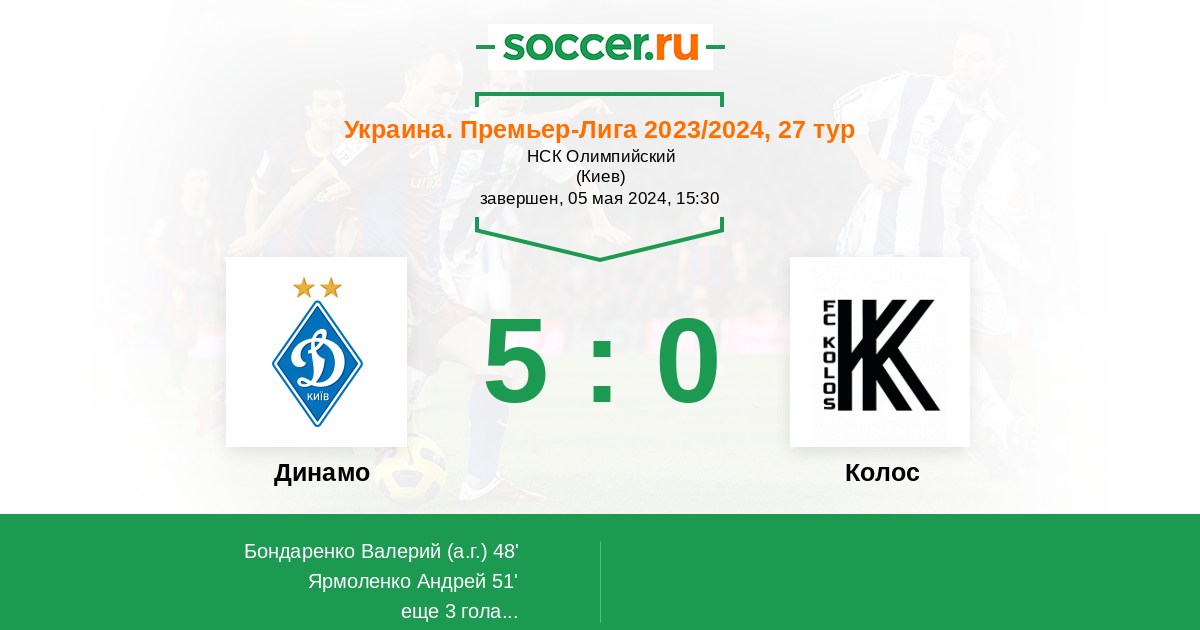 Протокол матча Динамо против Колос