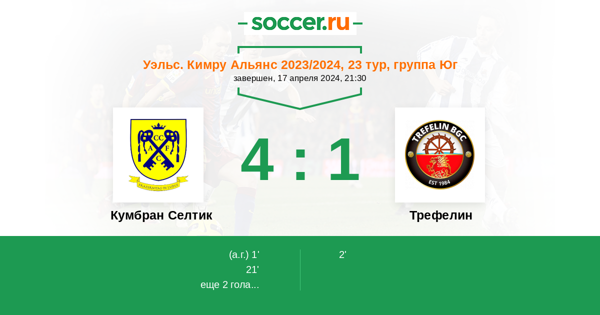 Протокол матча Кумбран Селтик против Трефелин