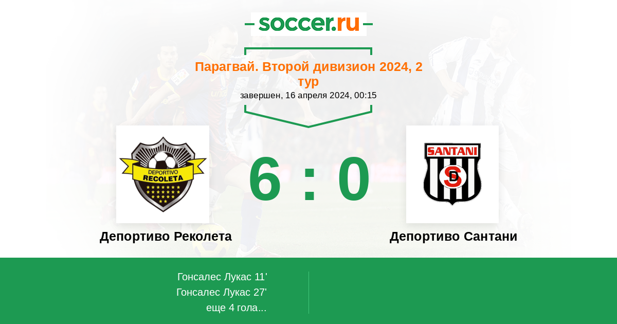 Протокол матча Депортиво Реколета против Депортиво Сантани