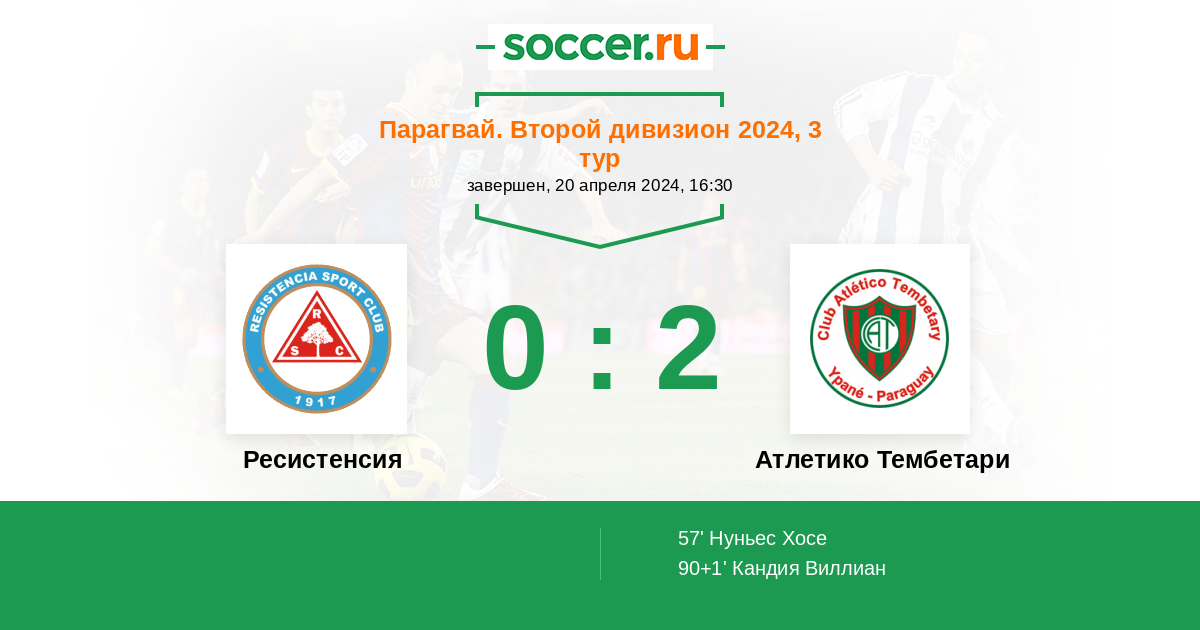Протокол матча Ресистенсия против Атлетико Тембетари