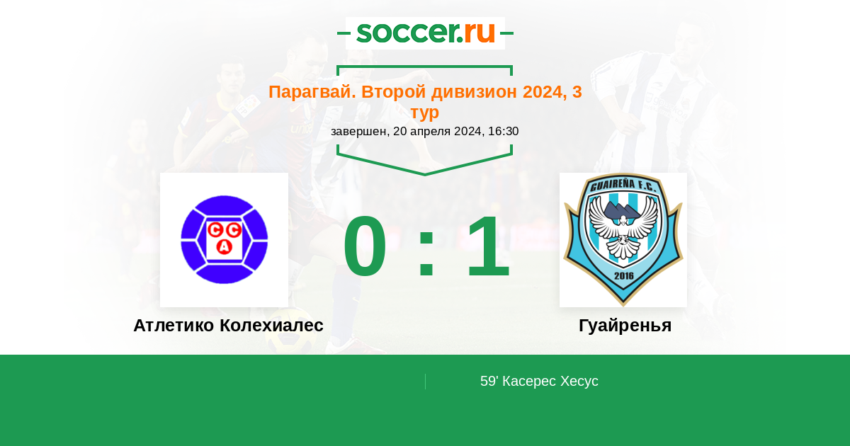 Протокол матча Атлетико Колехиалес против Гуайренья