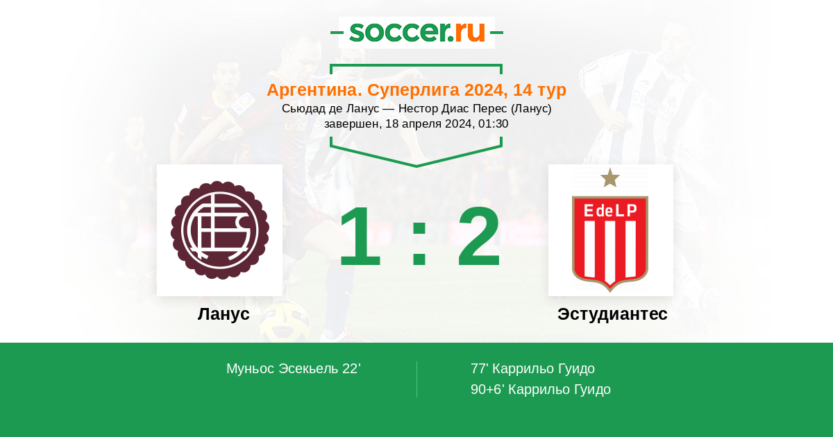 Протокол матча Ланус против Эстудиантес