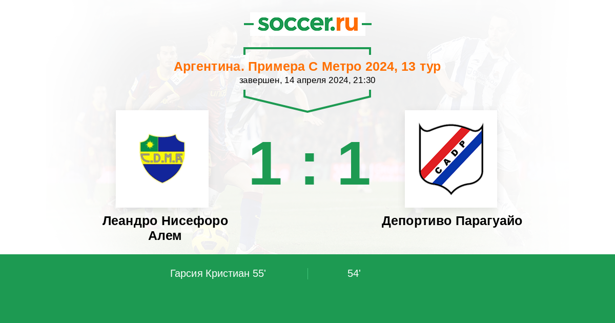 Протокол матча Леандро Нисефоро Алем против Депортиво Парагуайо