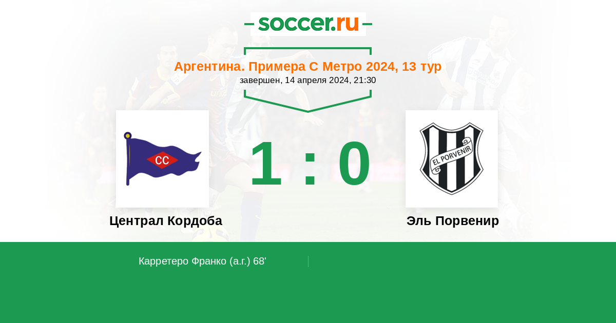 Протокол матча Централ Кордоба против Эль Порвенир