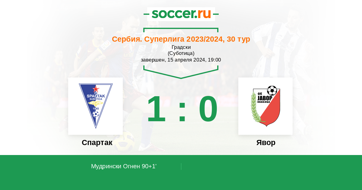 Протокол матча Спартак Суботица против Явор