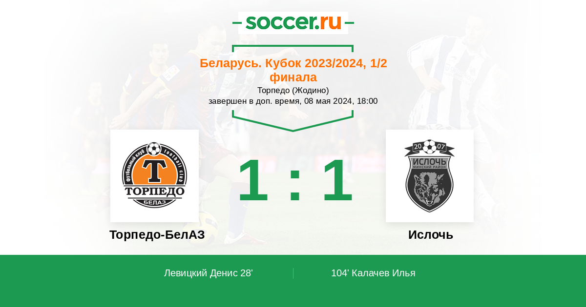 Протокол матча Торпедо-БелАЗ против Ислочь