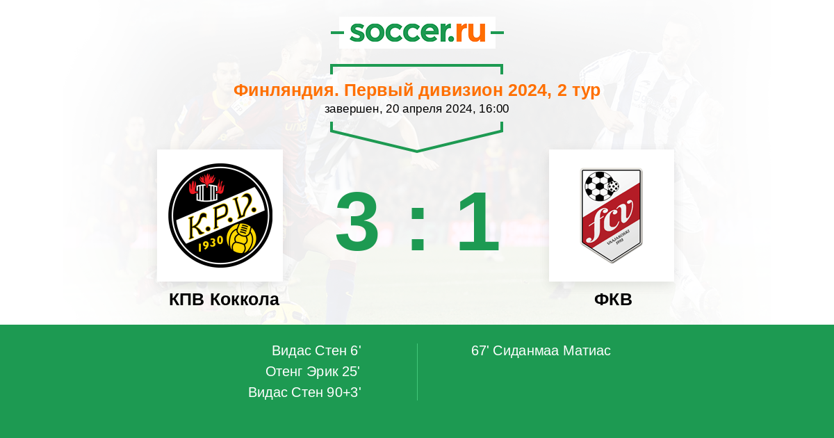 Протокол матча КПВ Коккола против ФКВ