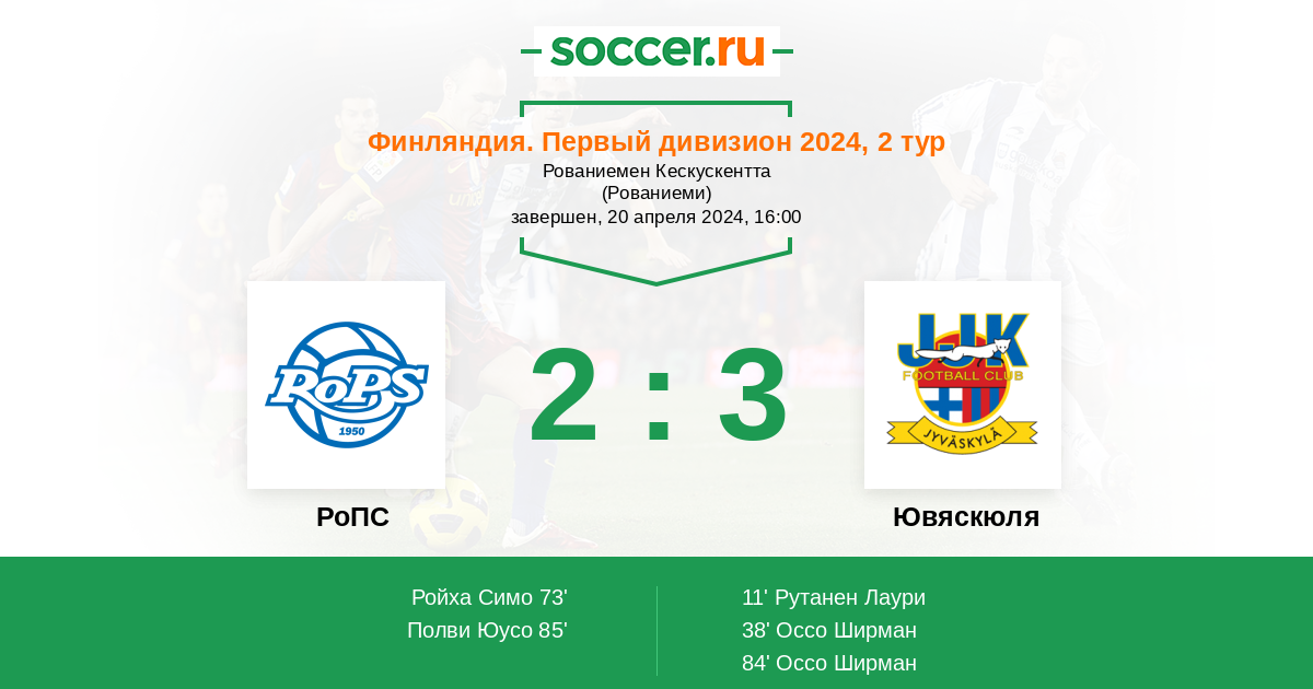 Протокол матча РоПС против Ювяскюля