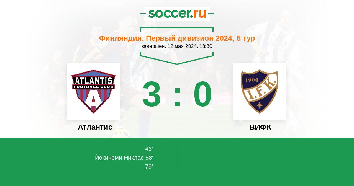 Протокол матча Атлантис против ВИФК