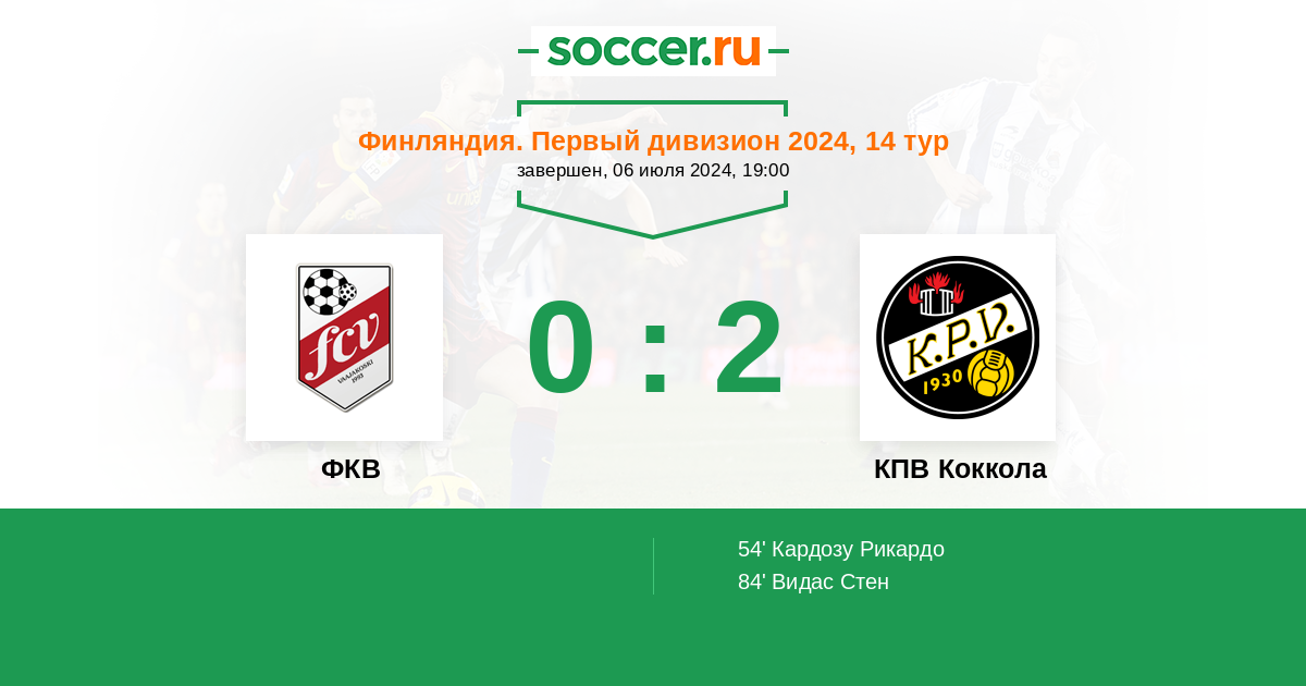 Протокол матча ФКВ против КПВ Коккола