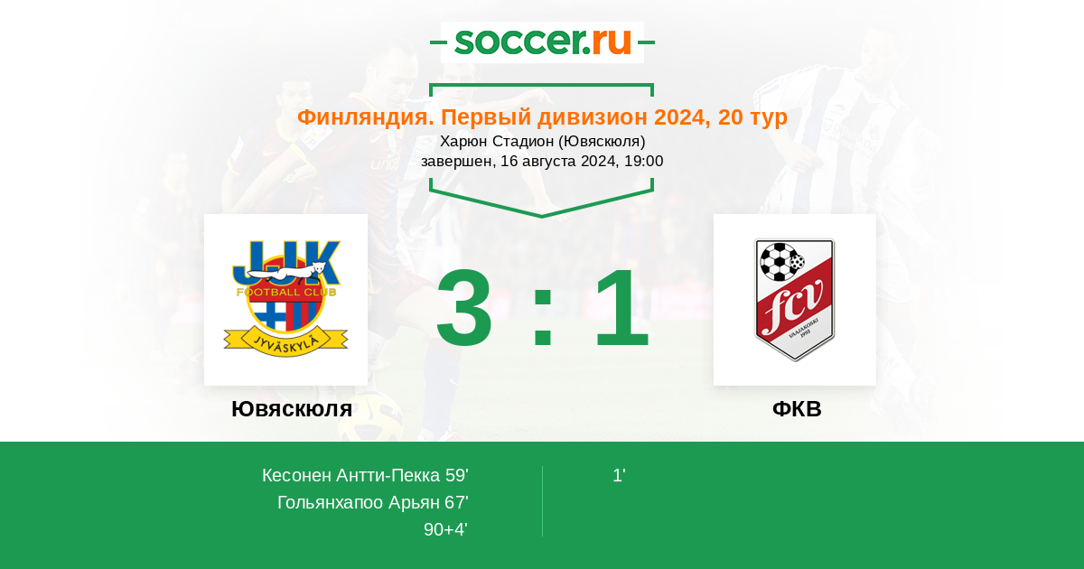 Протокол матча Ювяскюля против ФКВ