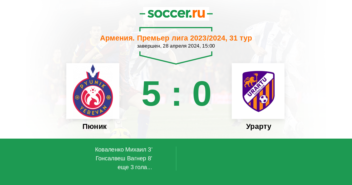Протокол матча Пюник против Урарту