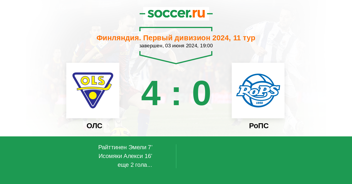 Протокол матча ОЛС против РоПС