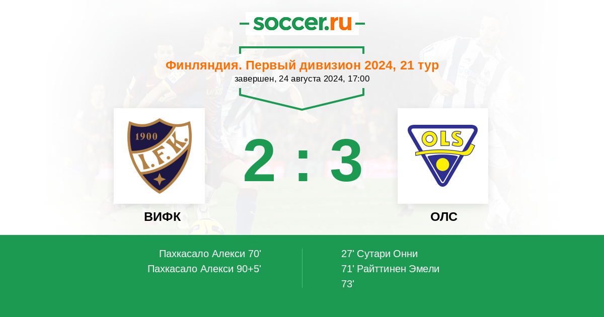 Протокол матча ВИФК против ОЛС