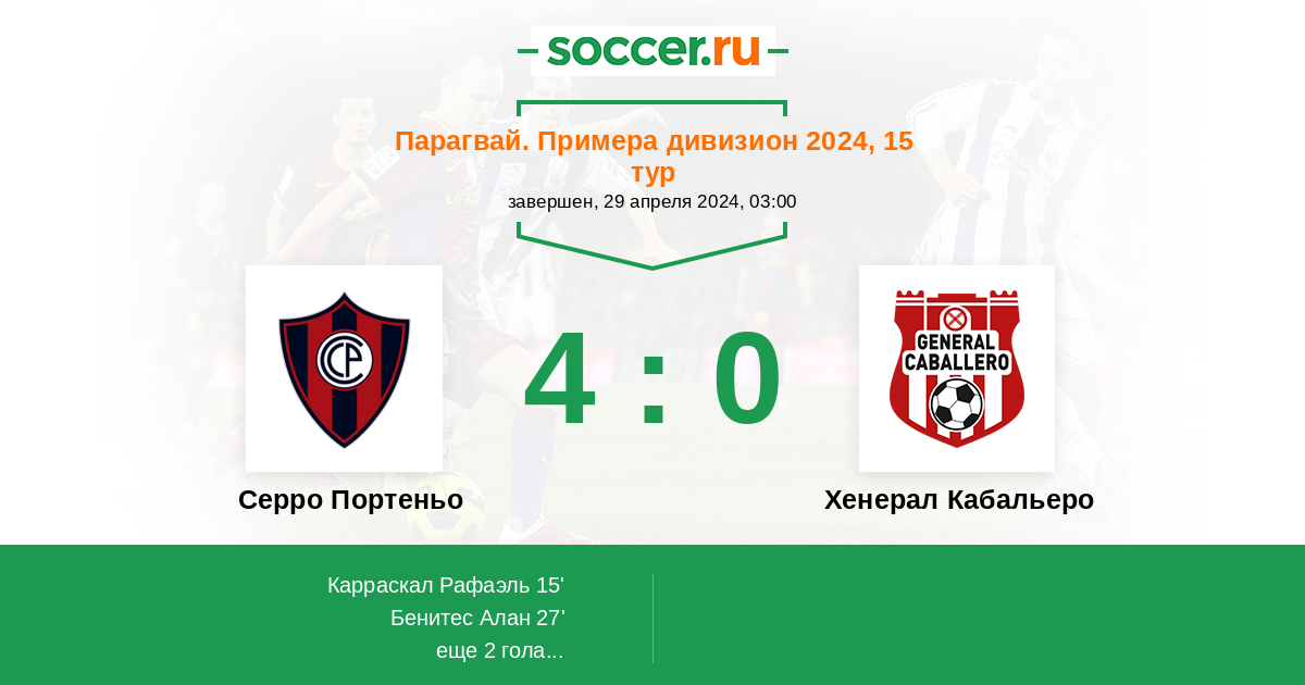 Протокол матча Серро Портеньо против Хенерал Кабальеро