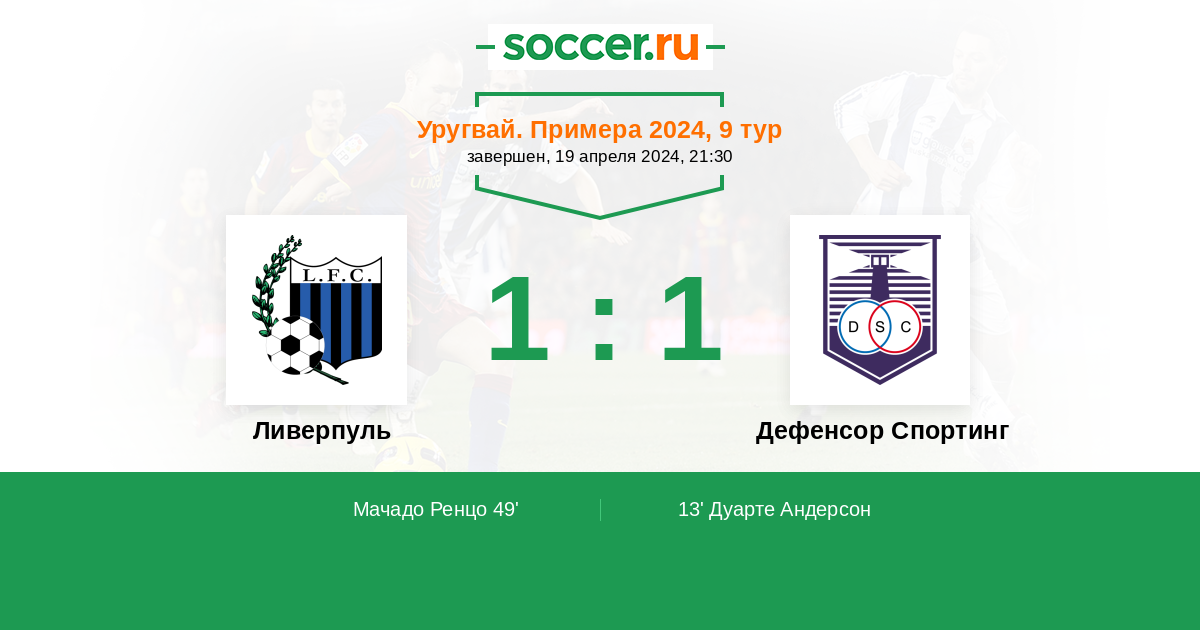Протокол матча Ливерпуль против Дефенсор Спортинг
