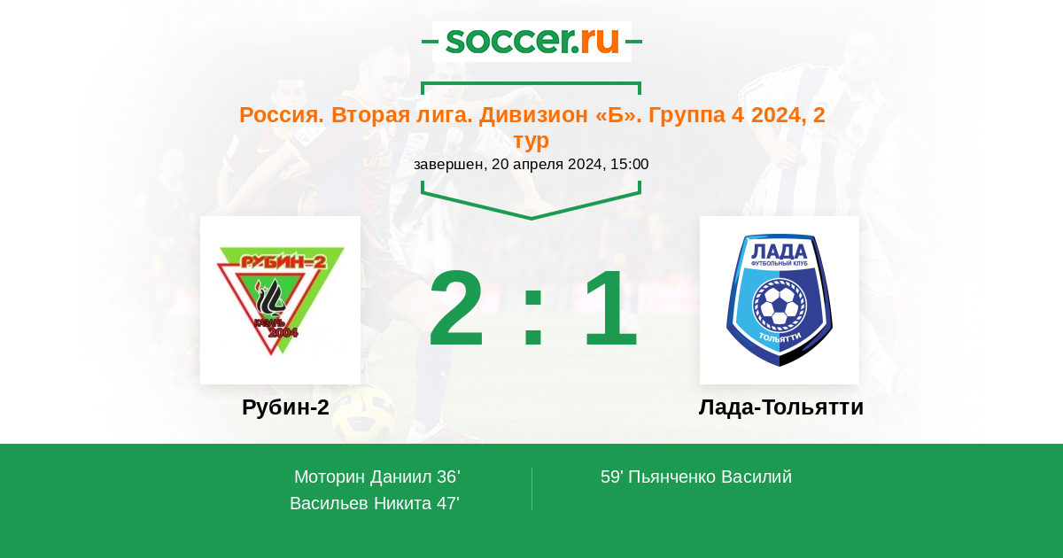 Протокол матча Рубин-2 против Лада-Тольятти
