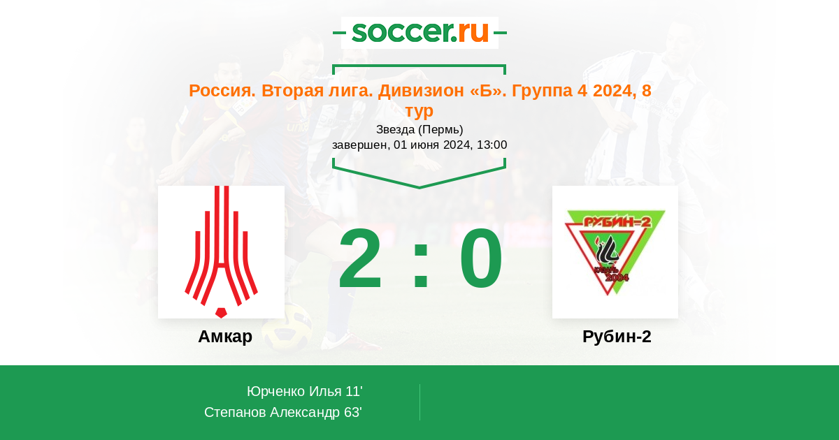 Протокол матча Амкар против Рубин-2