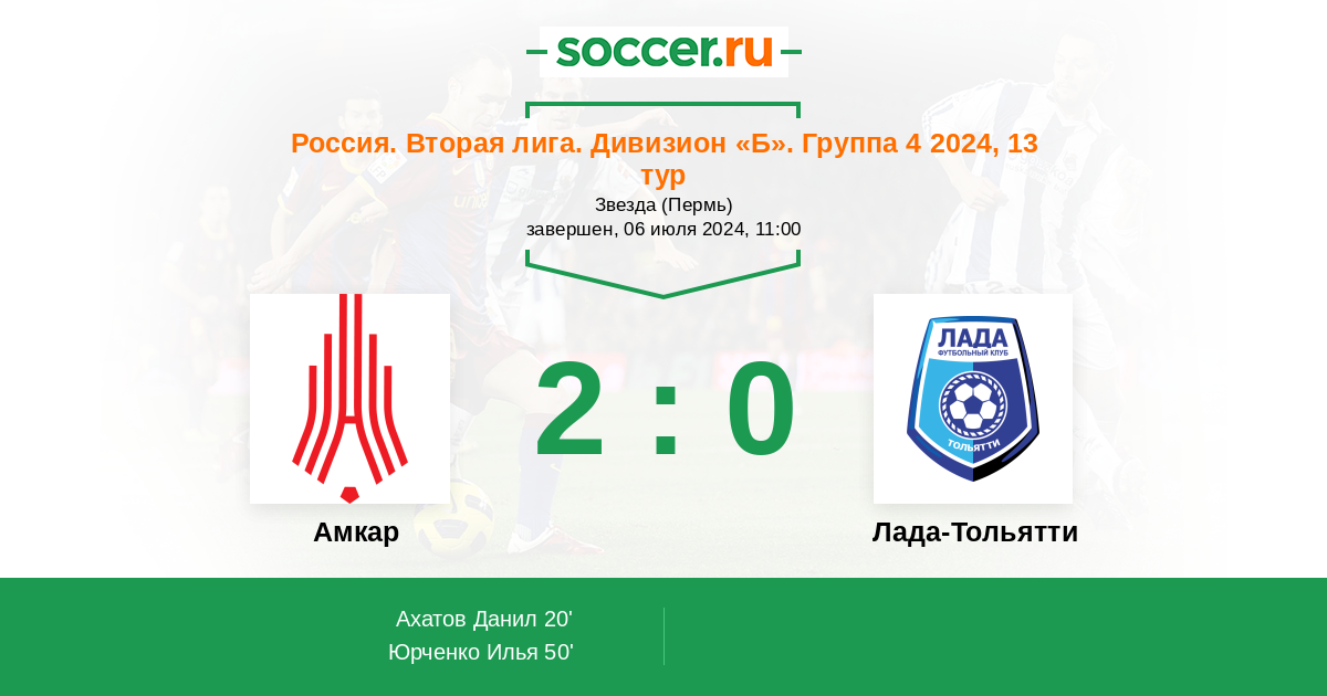 Протокол матча Амкар против Лада-Тольятти