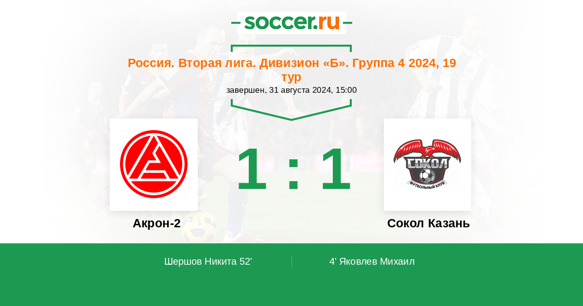 Протокол матча Акрон-2 против Сокол Казань