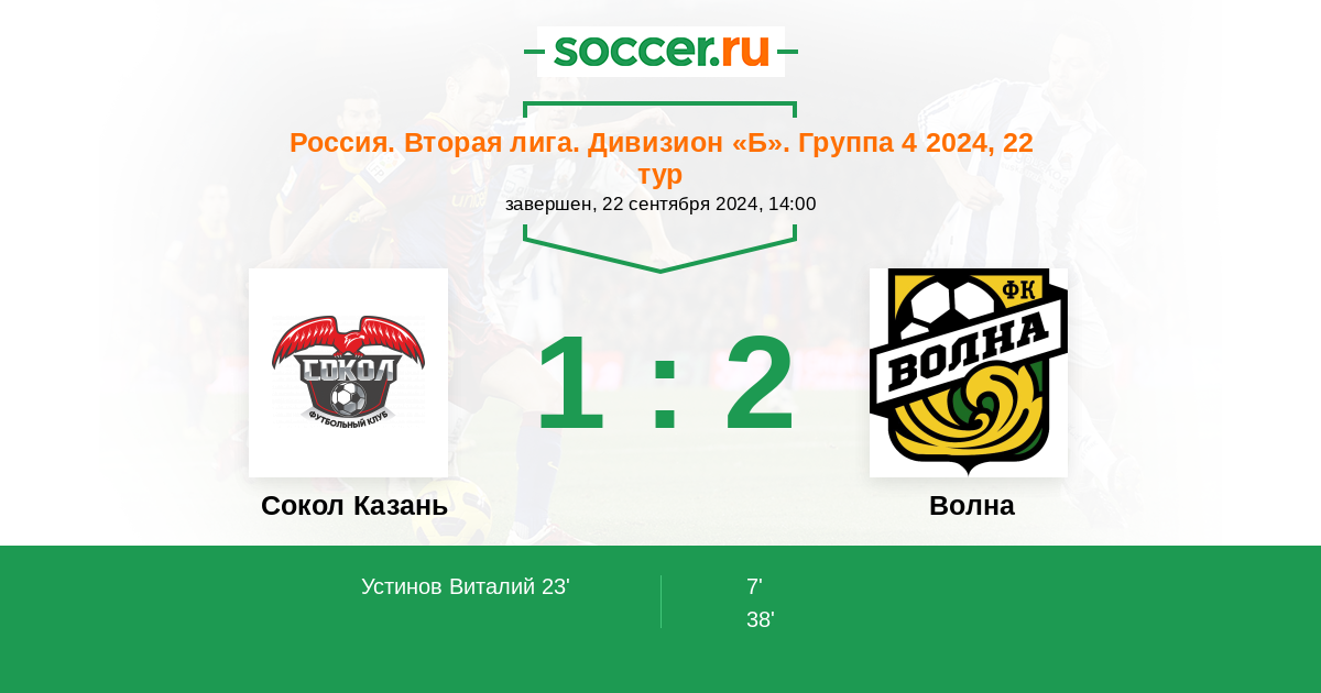 Протокол матча Сокол Казань против Волна