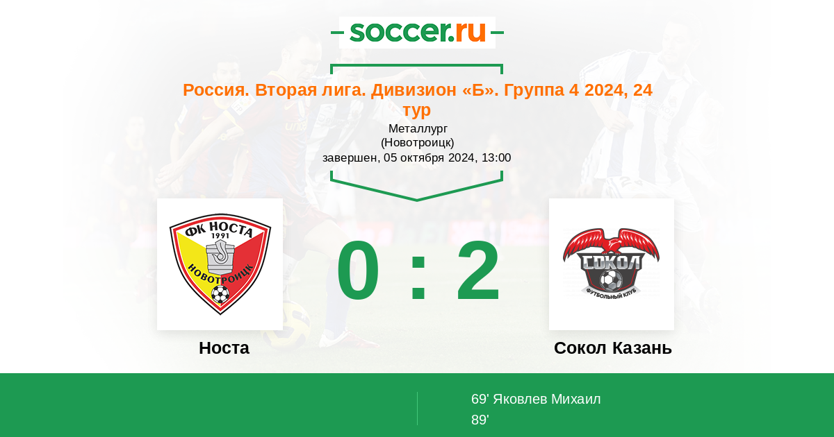 Протокол матча Носта против Сокол Казань