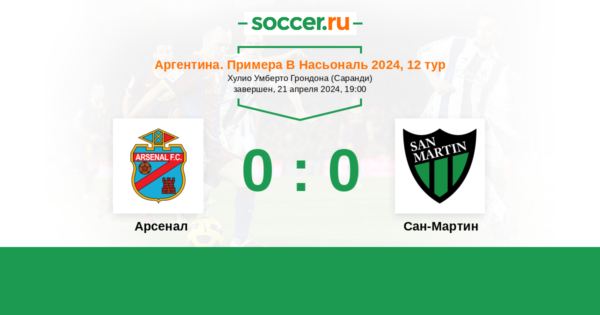 Протокол матча Арсенал против Сан-Мартин