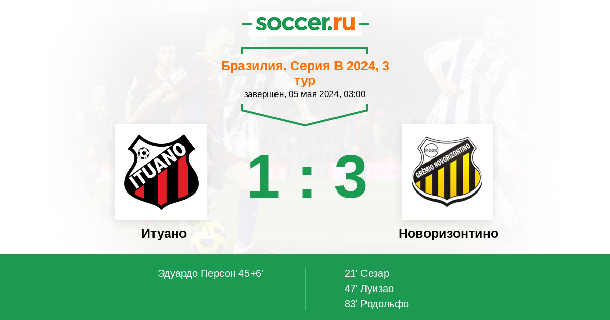 Протокол матча Итуано против Новоризонтино