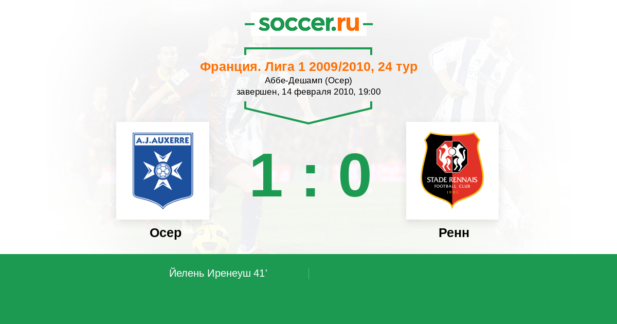 Протокол матча Осер против Ренн