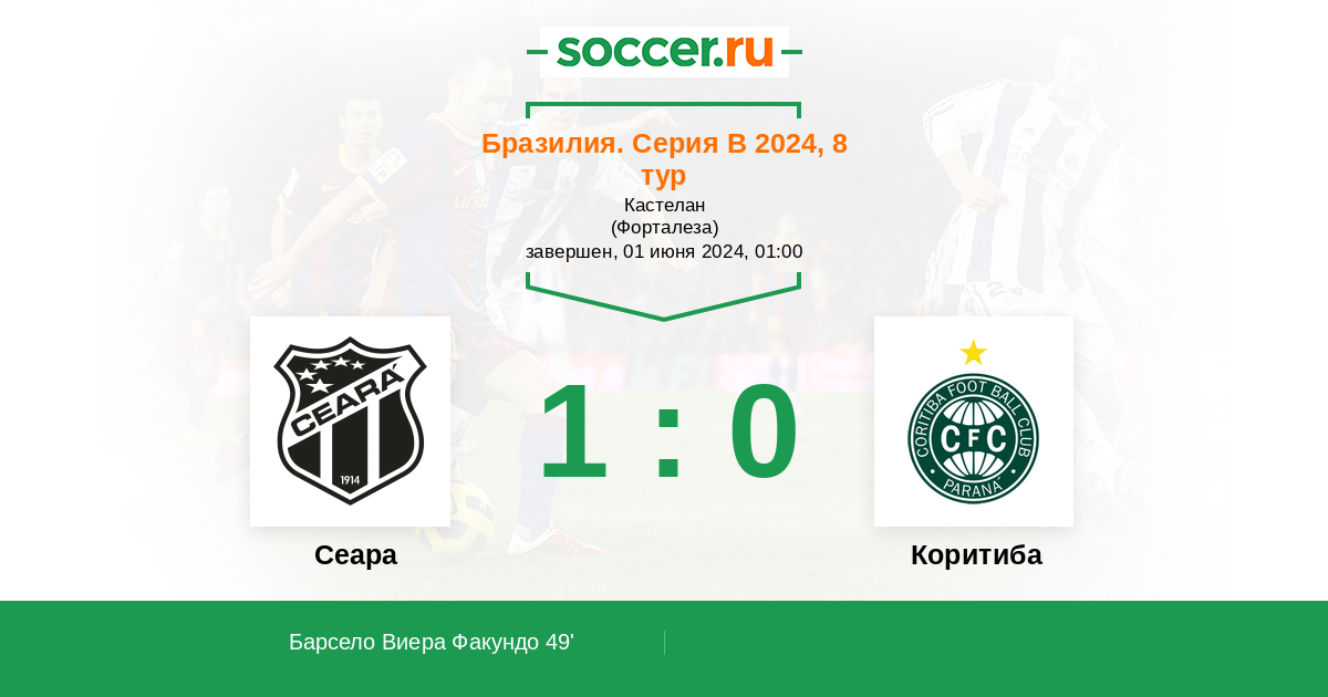 Протокол матча Сеара против Коритиба